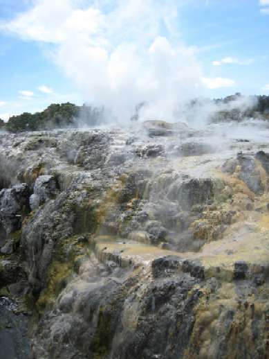Our next stop was Te Puia, a little attraction with Maori history and stuff. I got to see a kiwi. I didn’t know that they were nocturnal, and that I had no chance of seeing one in the wild, so the one they had there was as close as it gets and I’m calling it a real sighting. Te Puia had many active geysers that we made it just in time for. We hiked around and saw mud bubbling, and yellow dirt and rocks and all that stuff, all the smoke coming out of the ground, you get the idea. MK deleted the mud pictures, sorry folks.