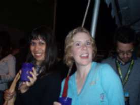 JC and I then checked out a band here at the outside Pure Volume stage, then met KD, and had some Brick Oven for dinner and saw some of the UT game on our way to the Diesel party. There we saw another great line up: David Vandervelde, The Epochs, Illinois, Matt & Kim, Tokyo Police Club, and Girl Talk again. I would recommend all of that music. The party was great and the (free!) drinks were nice. It might have been a little too much for some people, it got a little dirty in there:
