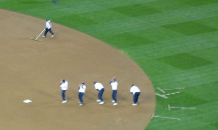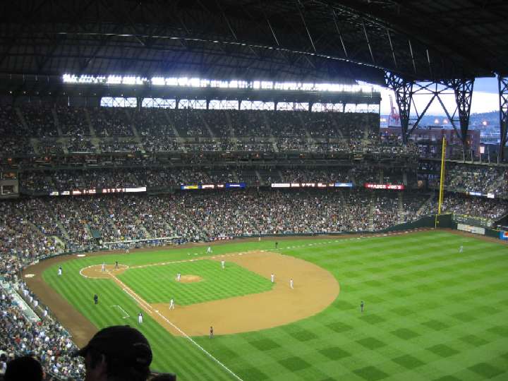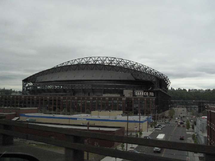 That’s Safeco inside, you can see we spared no expense on seats. The guys that were raking dropped them and did a hilarious dance. I got the pic of the big screen right when the Red Sox ad popped up, woohoo. The guys were old(!) and it was adorable. It was a pretty good crowd and the Mariners also beat the Royals, yay!