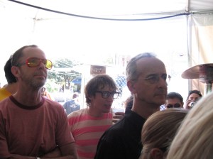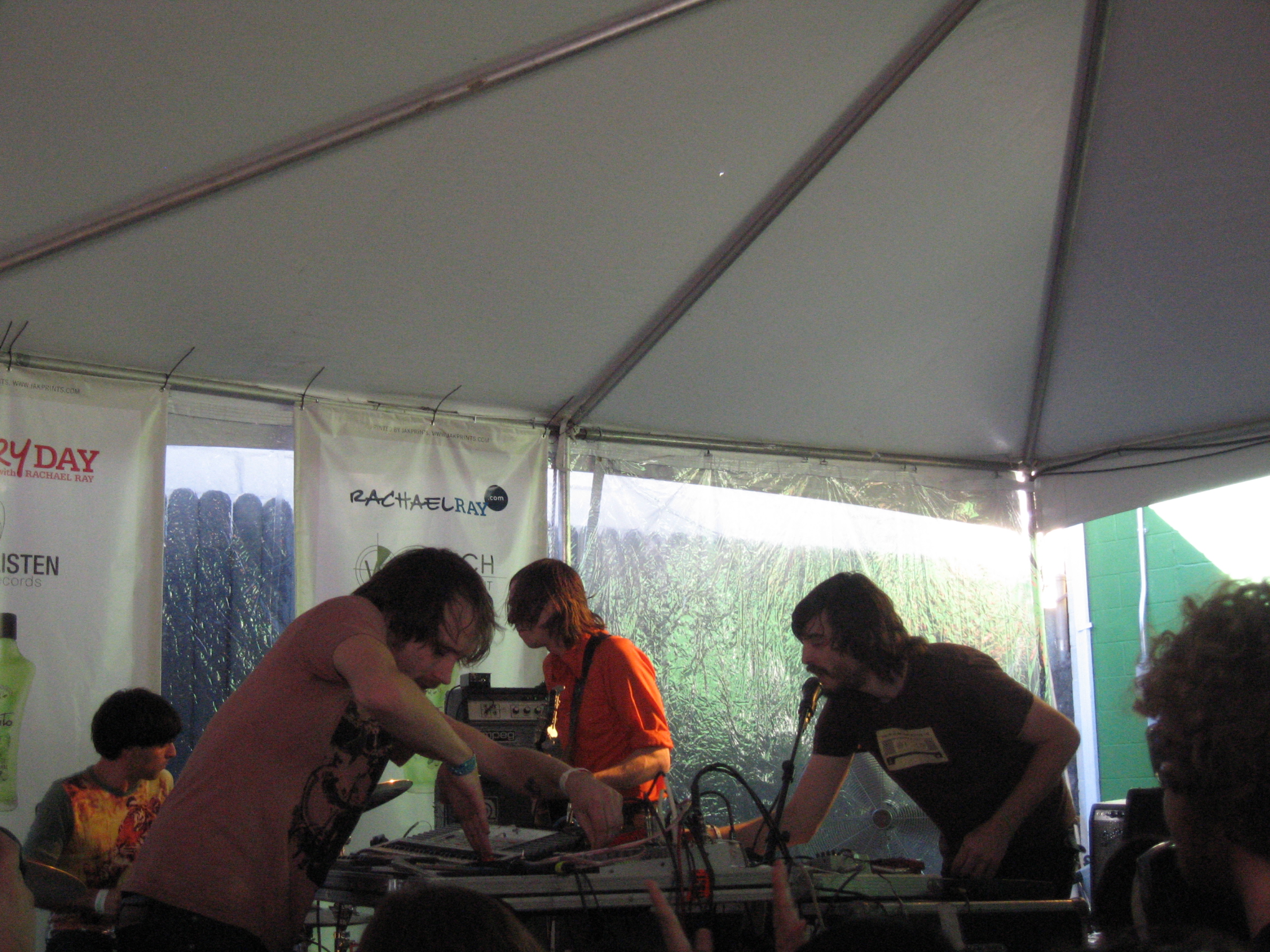 KD and I were overwhelmed with options today. JC was at one party, LC another. But we felt a little nostalgic and decided that since we hadn’t visited Beauty Bar all week, that we would head over there for the Rachael Ray (yes, that one) showcase. We made it in relatively easily. In the pictures, that’s all food you see. It never ran out. We assumed there wouldn’t be any, which is why we ate first. So I can’t tell you what it was. I can tell you the Sparks was cold and we enjoyed Scissors for Lefty, The Stills, and Holy F@*k, who were even better than last year. We did see Efren Ramirez and Rachael Ray. We made friends, found out the mojito-y flavored things were free, and caught a nice little buzz.