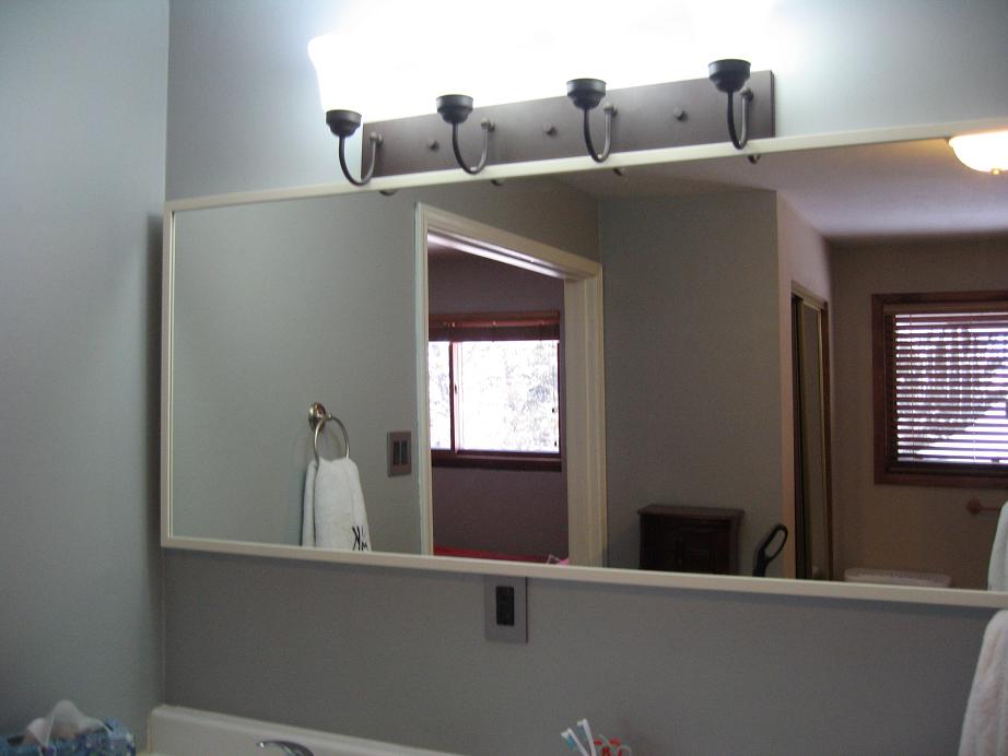 We then took the two mirrors I had painted out of the bathroom and put them in the living room, and got one big bathroom mirror. I love the way it looks. It feels clean and sleek.