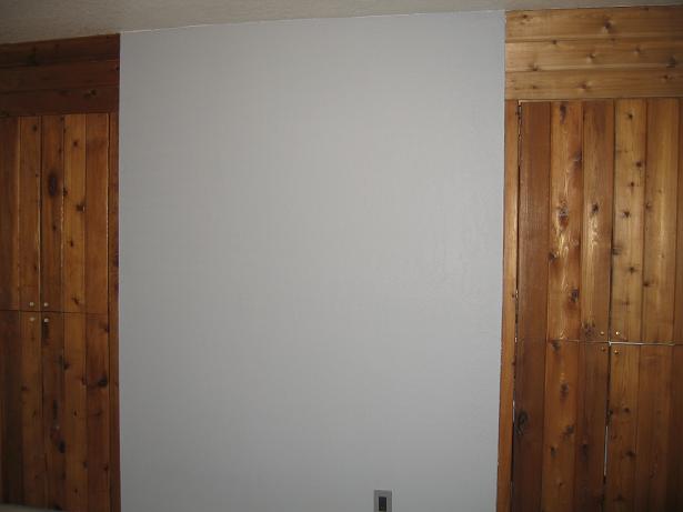 Then I had to paint the inside of the closets grey, they were yellowy-orange for no good reason. Then I did the trim white. Now the whole room matches. Except for the fireplace…