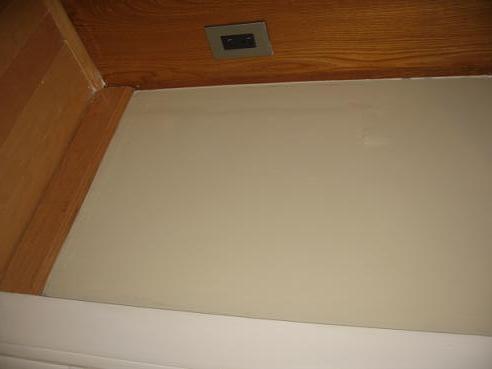 Well, that’s because MK sealed up the doggie door! He insulated the gap and put wood in. Then I spackeled and sanded and painted. So it used to be a giant door that let cold air in. You can totally see in the pic that it isn’t perfect since the doggie door was put in all junked up. We did the quick fix but from far away since it’s on the floor you totally can’t see the little hump there. And no more cold air!
