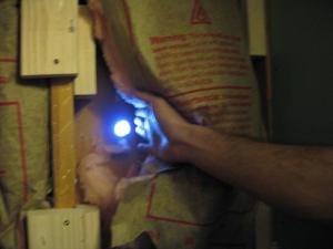 We found this space behind a wall that we were investigating. The best part? A hole in the wall. Like, from the inside to the outside. At first I thought we had a peeping tom of some sort… but it was behind some insulation so I survived the initial shock of MK showing it to me.