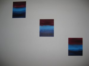 I painted some small pictures with colors from the house for the guest bathroom. Stencils blow.