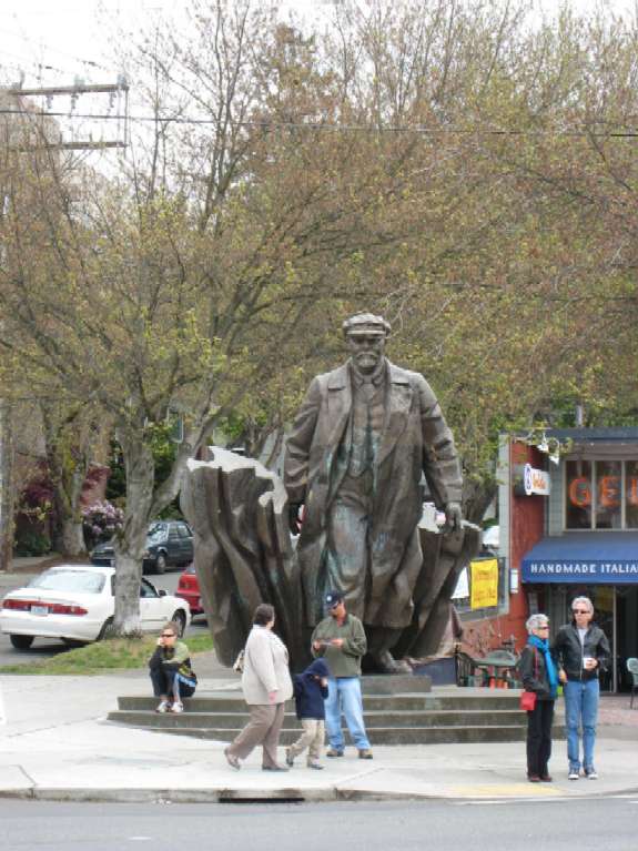 …or something like that. That’s Lenin, in Fremont. They call that place the Center of the Universe. He’s in front of a Taco Del Mar…