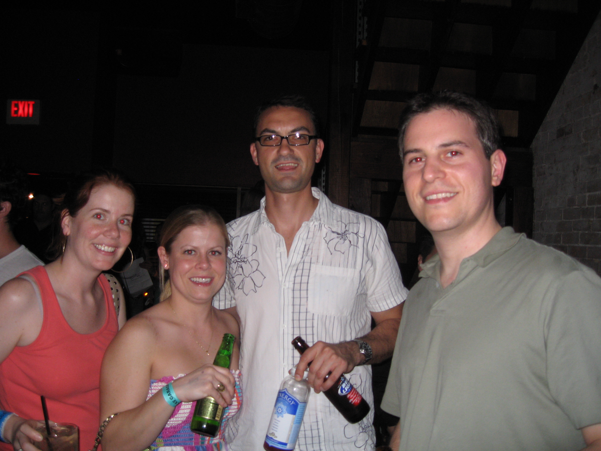 I took a ton of pictures and had a ton taken of me, due mostly to the gorgeous dress KD let me borrow. We made our way back to Waterloo for the night show. We saw Gil Mantera’s Party Dream, a little of the Yeasayers, Black Mountain, Islands, and The Breeders. Being not what we expected (a little too much of a downer), some of the crowd shifted to NOFX, while KD and I checked out Simian Mobile Disco and partied a little (that means I drank a lot of Tecate). JC and I made the sxsw-a-list. (It looks cute, but we were totally talking crap about something.) It was a pretty full afternoon.